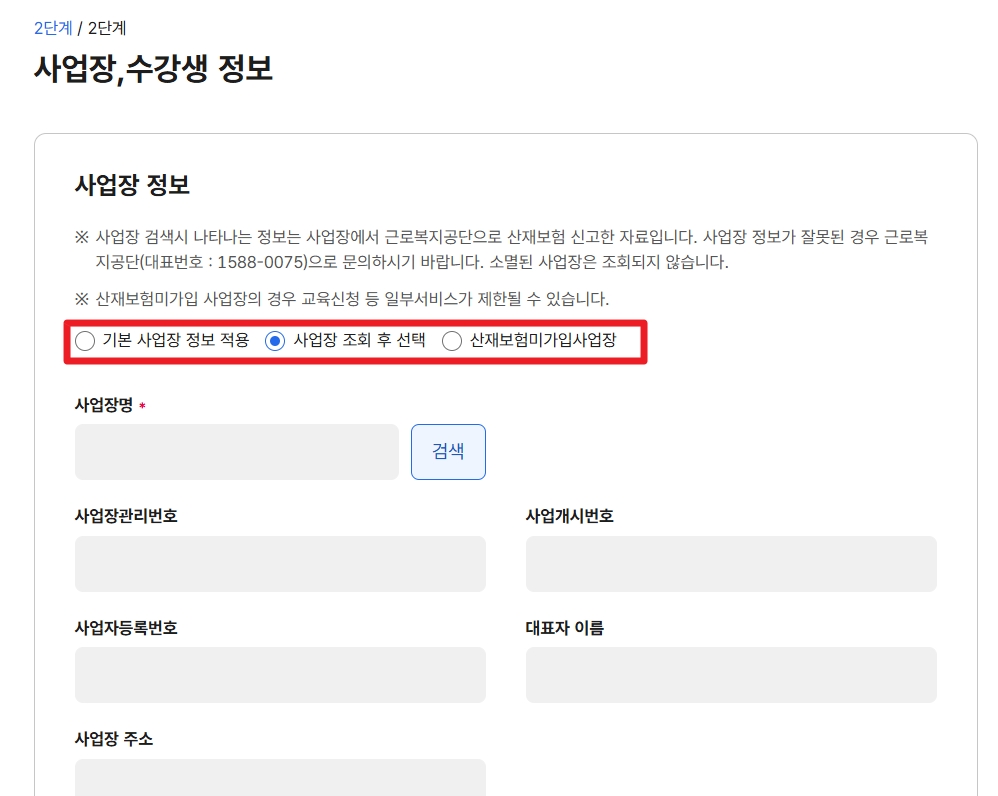 ※교육기관 : "(사)한국안전교육기술원" 체크